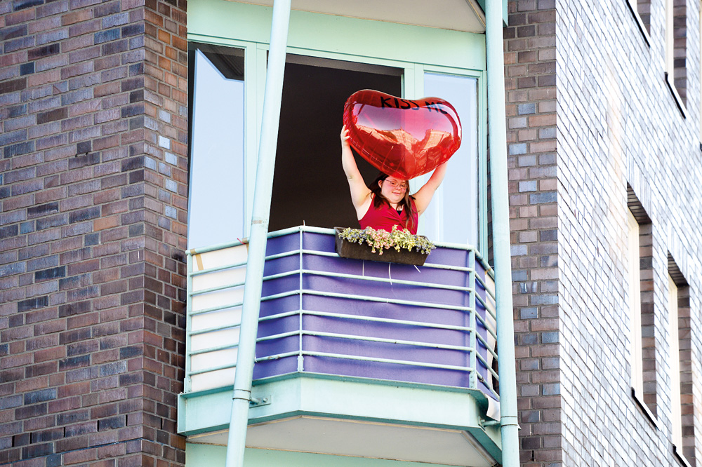 Paula Stolze performt auf ihrem Balkon „Lärm und Schwärm”, Foto: Thomas Panzau