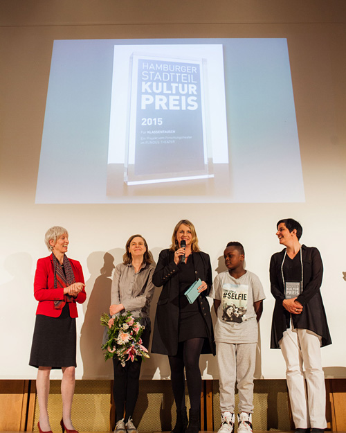 Der 12. Hamburger Stadtteilkulturpreis wurde am 19. Mai 2015 in einer festlichen Veranstaltung vor rund 300 Gästen in der Patriotischen Gesellschaft an das Projekt KLASSENTAUSCH des Forschungstheaters im FUNDUS THEATER verliehen. Der Ideenpreis Stadtteilkultur 2015 ging an FlüchtLINK, eine Projektidee des LUKULULE e.V.