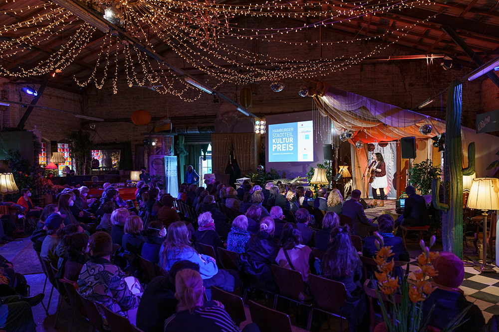 Am 5. April 2022 wurde der Hamburger Stadtteilkulturpreis für herausragende Projekt- und Programmarbeit nach zwei Jahren online endlich wieder in Präsenz in der Hanseatischen Materialverwaltung im Oberhafen verliehen. In diesem Jahr wurden zusätzlich drei Sonderpreise für herausragendes Wirken in der Hamburger Stadtteilkultur vergeben.