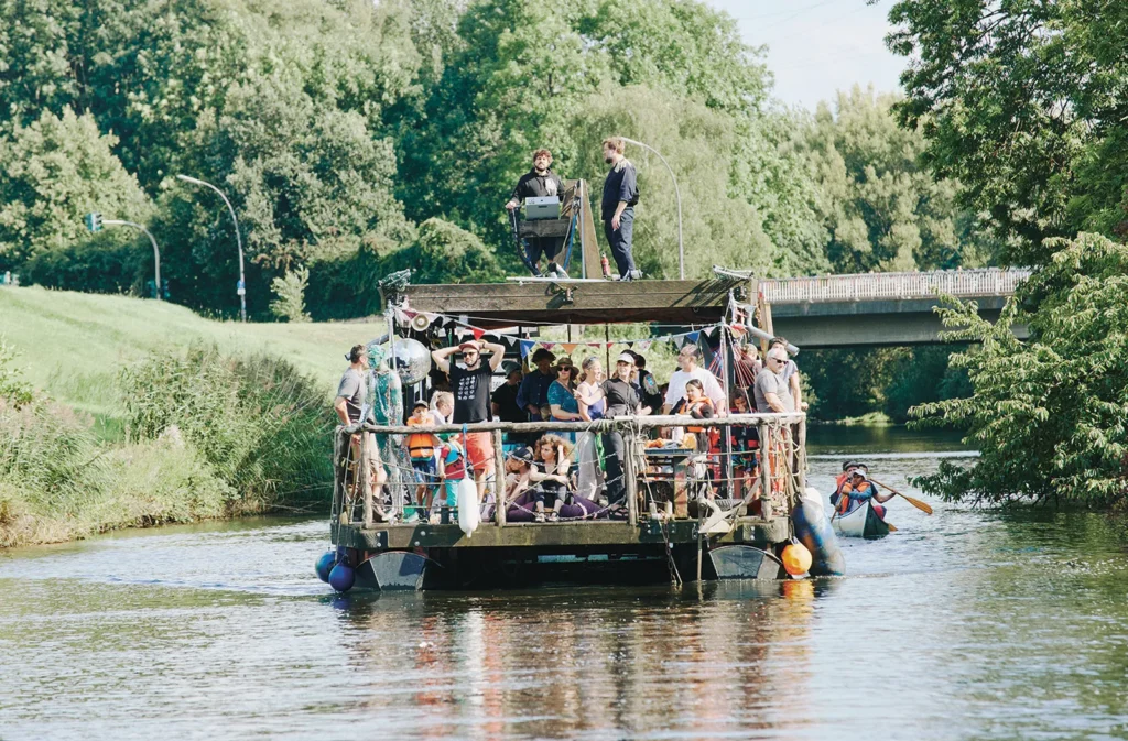 Als krönenden Abschluss des Festivals strömten über 120 Kinder und Erwachsene auf die Kanäle Wilhelmsburg, um die Zukunftswünsche der Kinder zu feiern und ein Zeichen für einen nachhaltigen Umgang mit den natürlichen Lebensgrundlagen sowie für die Zugänglichkeit auf die Gewässer zu setzen.