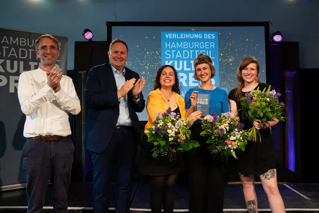 Am 16. Mai 2024 wurde zum 21. Mal der HAMBURGER STADTTEILKULTURPREIS verliehen: Das Projekt „Female* Voices – Was uns zum Leuchten bringt“ der Stiftung Bürgerhaus Wilhelmsburg wurde in feierlichem Rahmen in der Halle 424 mit dem größten Preis der Stadtteilkultur ausgezeichnet. Dieses Jahr wurde zum ersten Mal zusätzlich der Publikumspreis der Stadtteilkultur vergeben: Gewonnen hat ihn das Geschichtsprojekt „Erinnere unsere Geschichte – Jüdisches Leben in Wandsbek“ vom Kulturschloss Wandsbek.