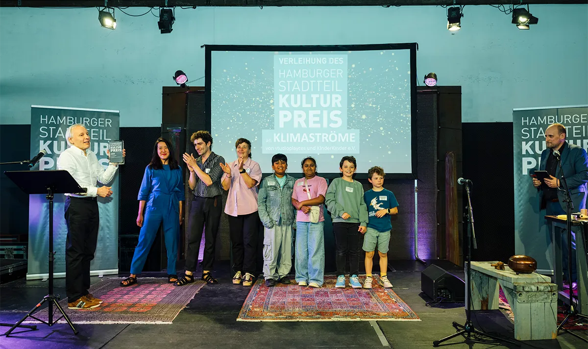 Am 13. Mai 2025 wurde zum 22. Mal der HAMBURGER STADTTEILKULTURPREIS verliehen: Das Projekt „KLIMASTRÖME – Das Fest der Zukunftswünsche“ vom studioplayces und KinderKinder e.V. wurde in feierlichem Rahmen in der Halle 424 mit dem größten Preis der Stadtteilkultur ausgezeichnet. Mit dem Hamburger Stadtteilkulturpreis werden wegweisende Projekte und Programme der lokalen Kultur in Hamburg gewürdigt. Der Publikumspreis der Stadtteilkultur ging an „BOOTsWagen & Osterbrooklyn“ vom BOOT e.V. Hamburg.