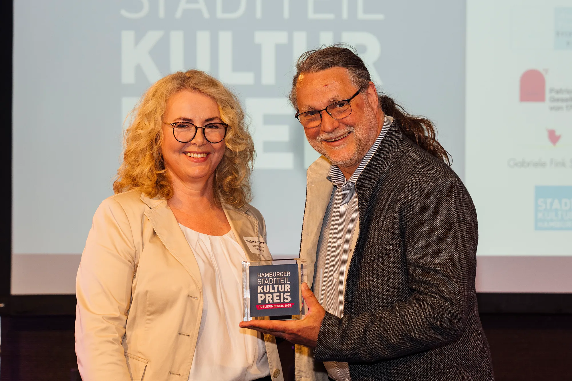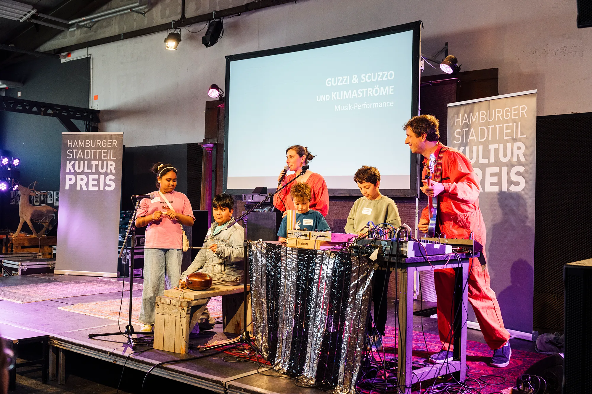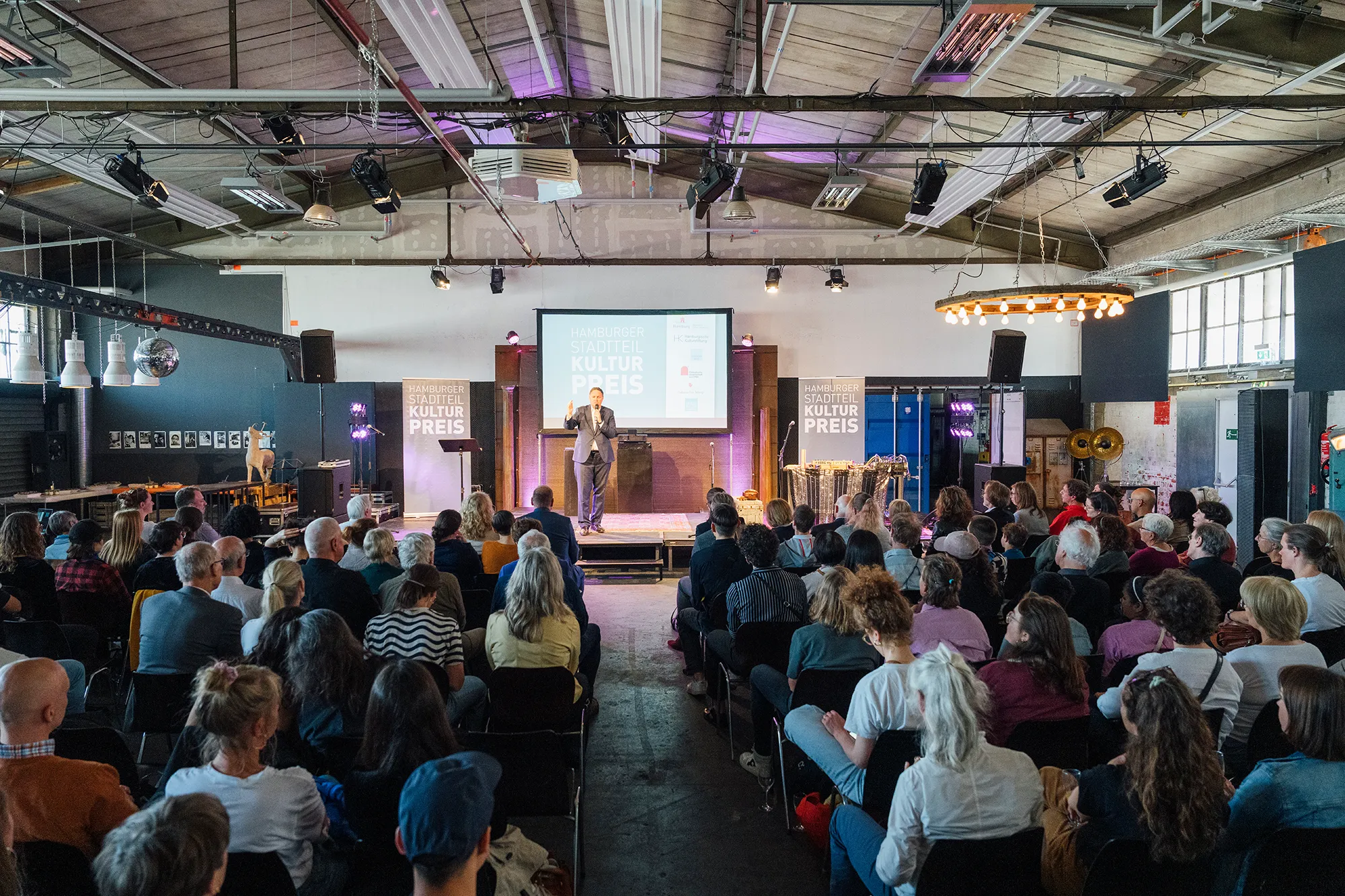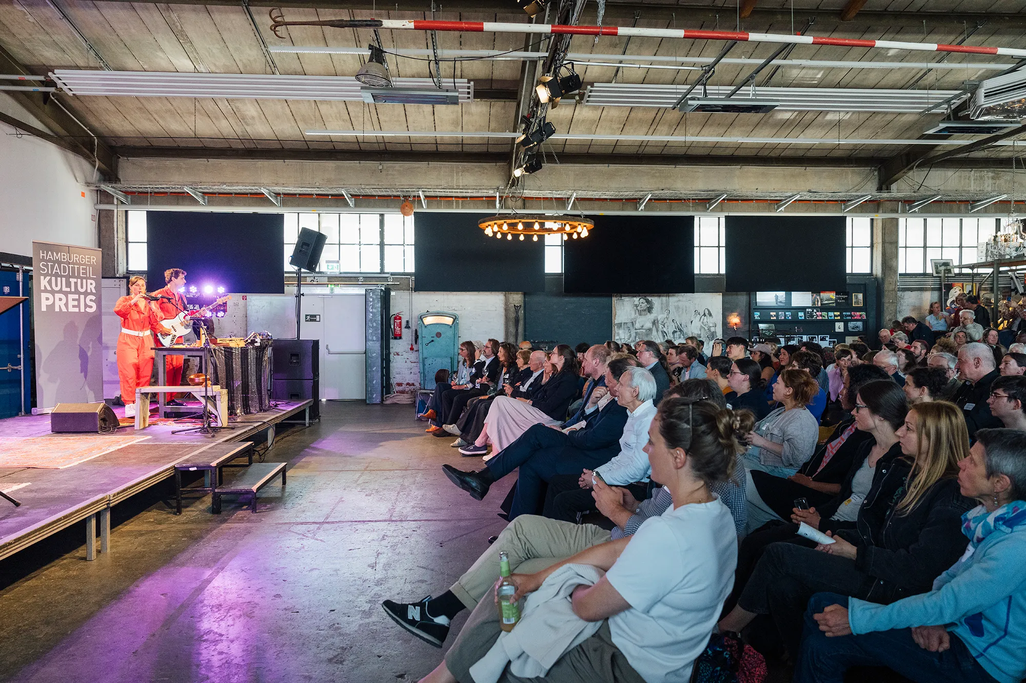 Am 13. Mai 2025 wurde zum 22. Mal der HAMBURGER STADTTEILKULTURPREIS verliehen: Das Projekt „KLIMASTRÖME – Das Fest der Zukunftswünsche“ vom studioplayces und KinderKinder e.V. wurde mit dem größten Preis der Stadtteilkultur ausgezeichnet und der Publikumspreis der Stadtteilkultur ging an die Konzertreihen „BOOTsWagen & Osterbrooklyn“ vom BOOT e.V. Hamburg. Jetzt gibt es hier die Impressionen dieses schönen Events in der Halle 424 im Oberhafen.